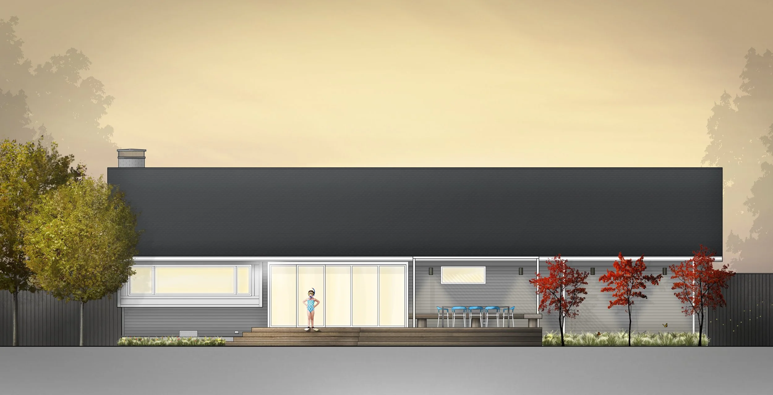 The Clover Lane project transformed a dark home in the Midway Hollow neighborhood by introducing clerestory windows to flood the interior with natural light and reconfiguring the kitchen and living spaces to connect with the backyard. The redesign features a pool alongside a petite pool house, creating a bright and functional indoor-outdoor experience.