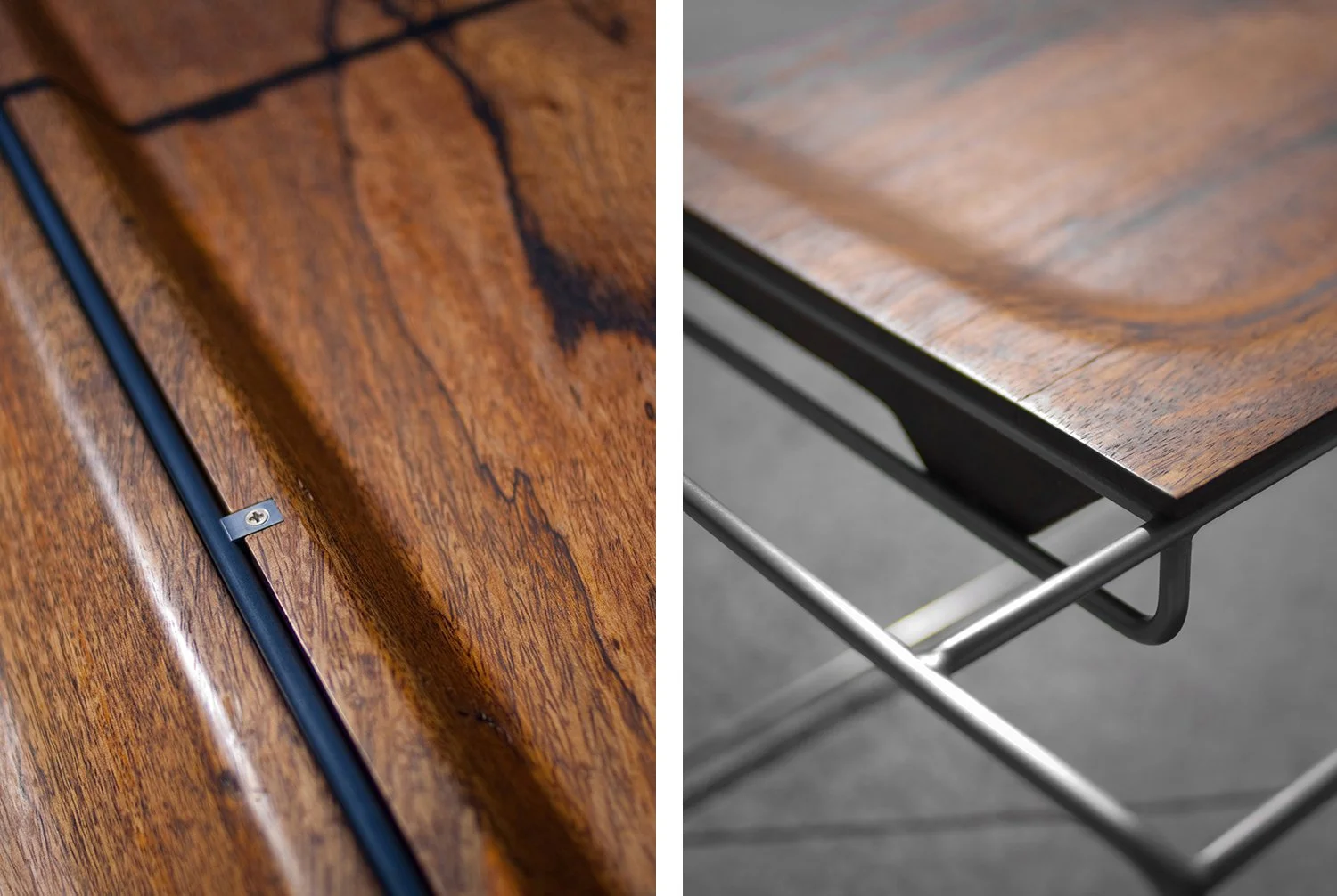 Inspired by a three-dimensional line drawing of a cube, Mango is the initial piece in the Wireframe series. A simple polished steel structure creates a framework upon which a multitude of seating elements can be suspended. The seat on Mango is a piece of reclaimed wood, CNC routed so it would interlock with the frame and create a smooth and comfortable seating surface.